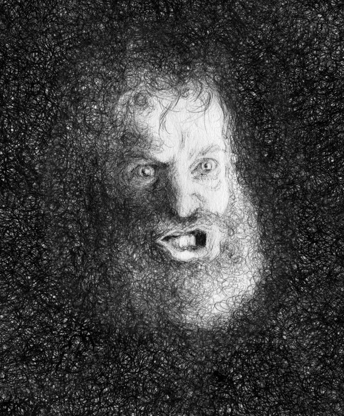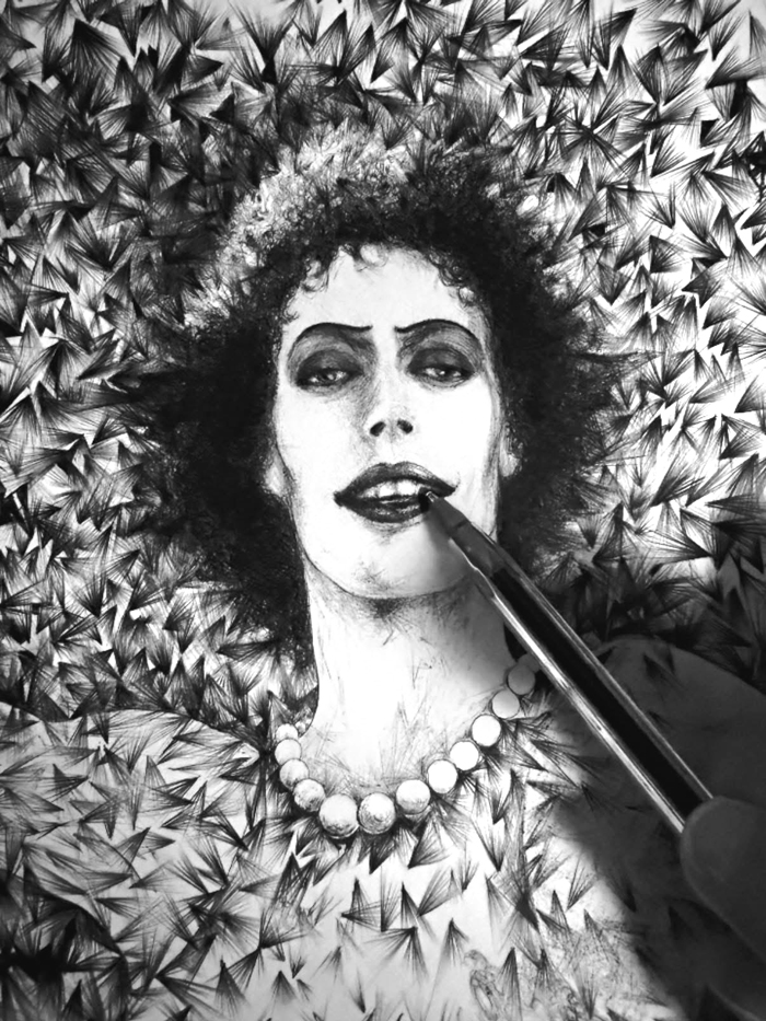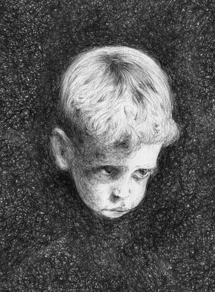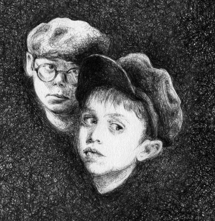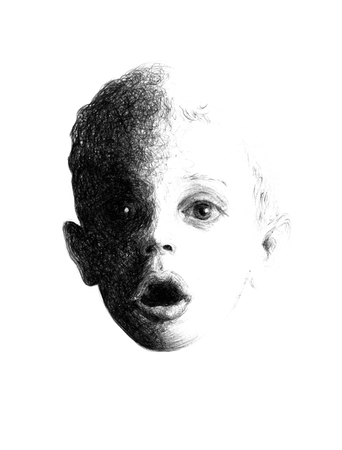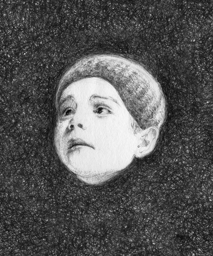 Réalisée au bic noir, cette série de portraits rend hommage au film « La Cité des enfants perdus » de Jean-Pierre Jeunet et Marc Caro.